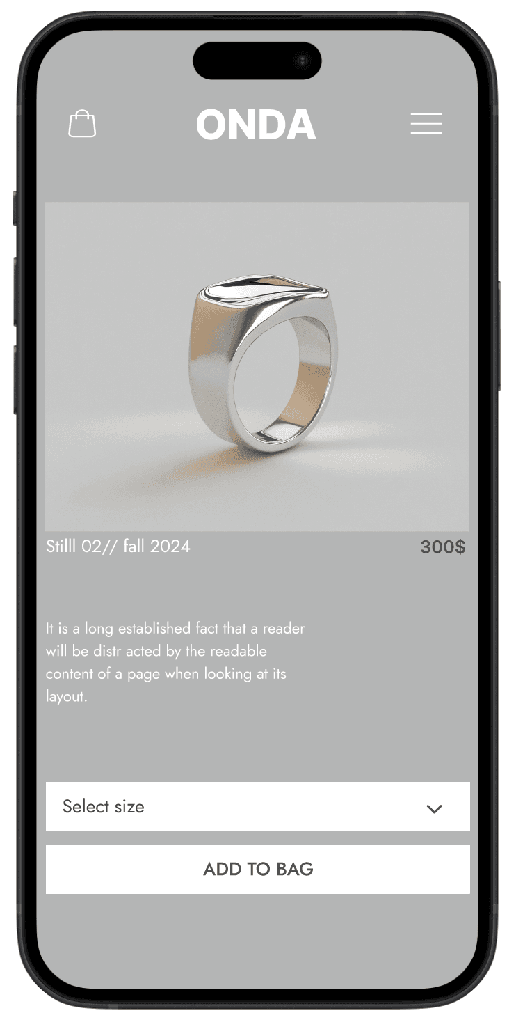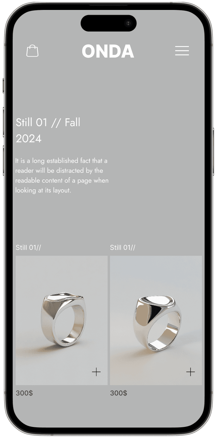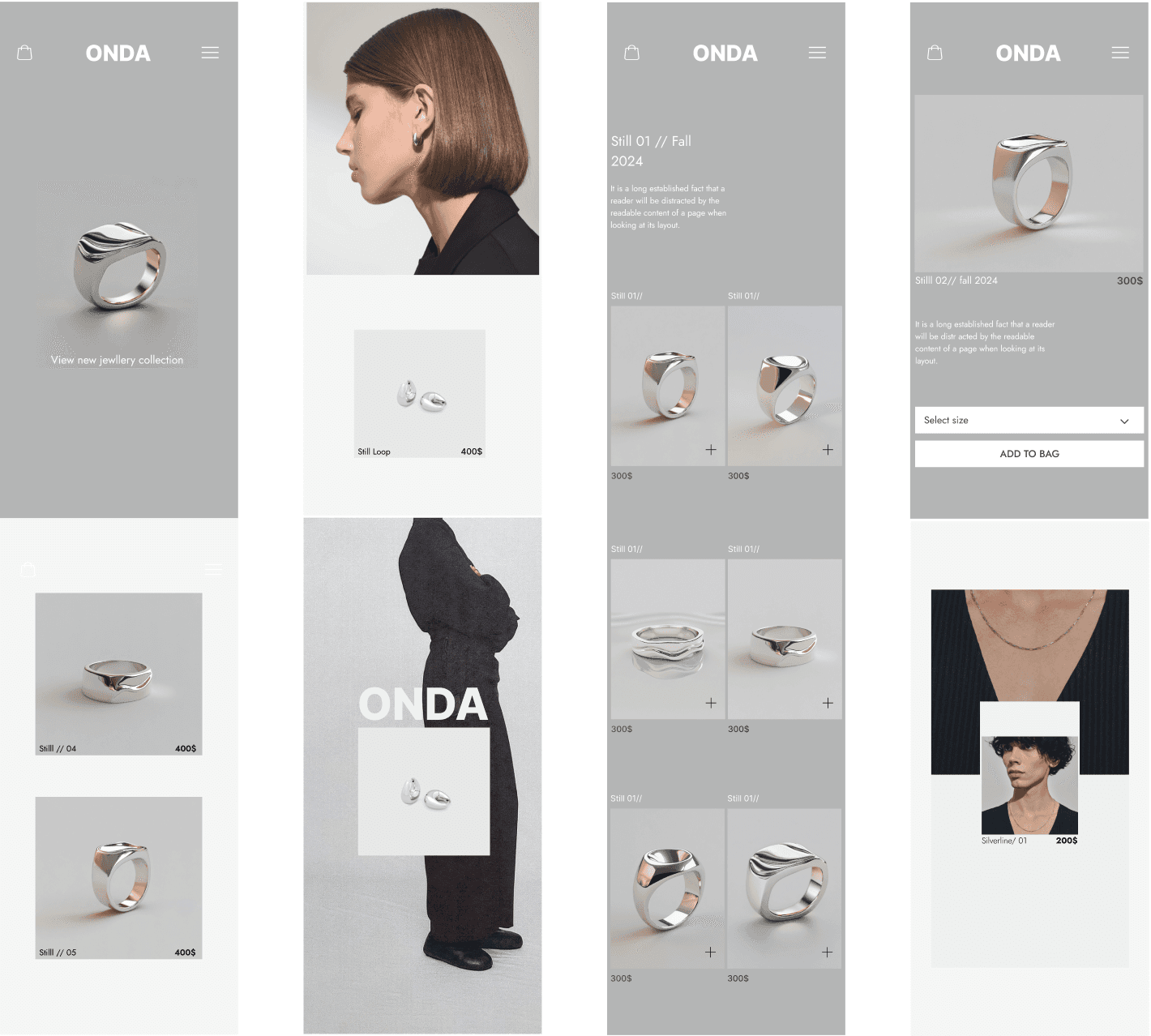 This is a personal project that has not been launched. Through the work with ONDA, I have explored the entire design process – from concept and visual identity to structure and interaction. The goal has been to challenge my own skills in digital branding and user experience, with a focus on both form and function.